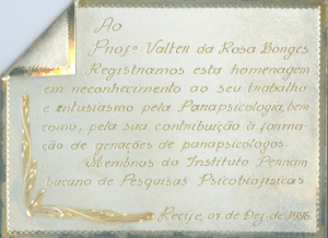 Participei, com Ivo Cyro Caruso e Ronaldo Dantas Lins, da Banca Examinadora que aprovou a monografia de Maria Salete Rego Barros Melo para o Curso de Pós-graduação em Parapsicologia do IPPP.