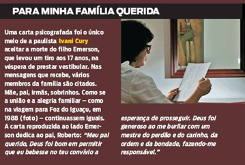 Depois disso, Ivani deixou de ser uma católica não-praticante e mergulhou no espiritismo. Hoje, ela também acredita que Emerson interveio no sequestro relâmpago da irmã Roberta Cury, 35 anos, em 2003. No carro com o filho de três anos, ela chorava pedindo ao sequestrador que não lhe fizesse nada, pois sua mãe já perdera um filho e não aguentaria novamente essa dor. “De repente, ele parou o carro e disse que, pelo meu irmão que estava no céu, me deixaria ir embora sem levar nada”, conta Roberta. Em 25 de novembro de 2008, o espírito de Emerson mostrou à família como agiu: “Peço licença para a aventura-desventura da Roberta no sequestro relâmpago (…) dando uma de anjo da guarda para a mana”, dizia a mensagem.